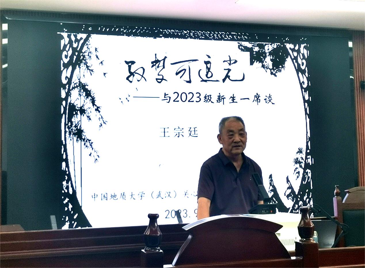 法学专业本硕新生见面会于2023年9月7日在北综模拟法庭顺利举行。中国地质大学(武汉)法学系退休教授、校关心下一代工作委员会委员王宗延老师以“驭梦可追光——与2023级新生一席谈”为题,为怀揣着希冀与梦想的2023级新生讲授了一堂生动的人生课。