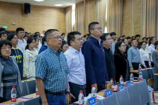 会议由学院党委副书记龚丽主持,学院党委书记徐岩、院长龚健、副院长王忠、朱江洪、吕凌燕等全体在汉院领导、各系负责人、教师代表、新生班主任、学工组辅导员及兼辅、新生各班助班与2025级全体新生共同参与此次典礼。典礼在庄严的国歌声中拉开帷幕。